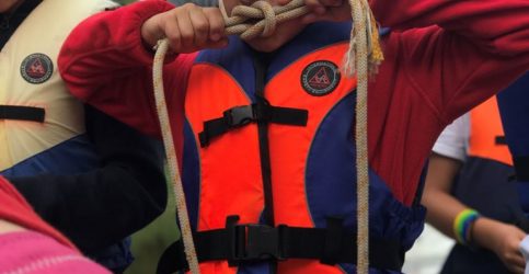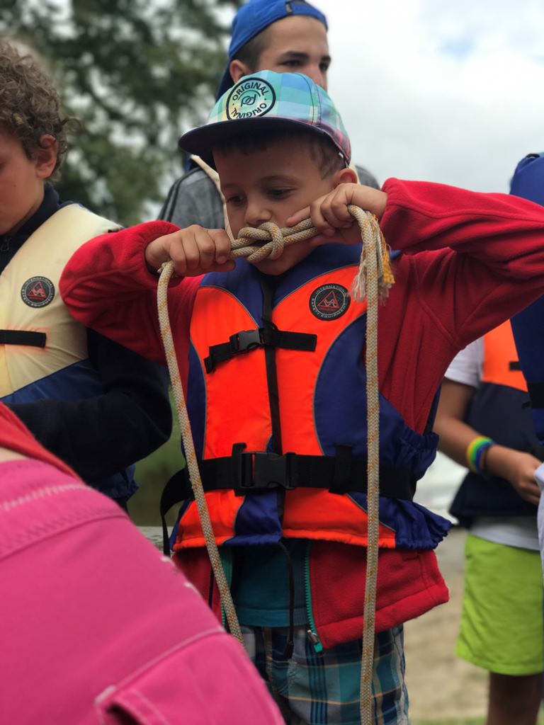 Szkolenie odbywa się w małych grupach. Do asekuracji dzieci na wodzie posiadamy dwie łodzie motorowodne. Podczas zajęć na wodzie dzieci ZAWSZE ubrane są w kamizelki asekuracyjne.